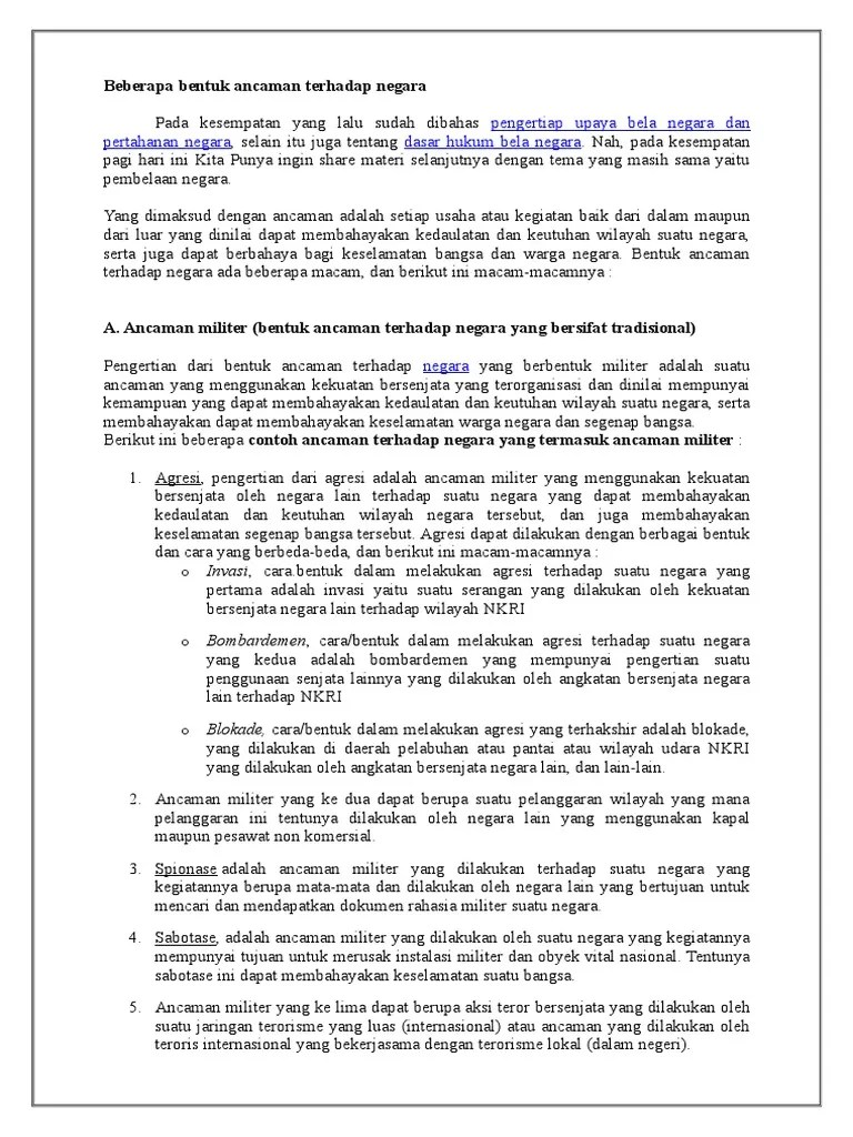 Sila pertama pancasila itu ketuhanan yang maha esa, jadi kalo ga percaya tuhan menyimpang dari pancasila dong? 20 soal pilihan ganda a. Ekonomi merupakan suatu bidang atau aspek yang penting bagi suatu negara. Contoh kasus ancaman di bidang politik. 3 ancaman isis ke indonesia news liputan6 com.