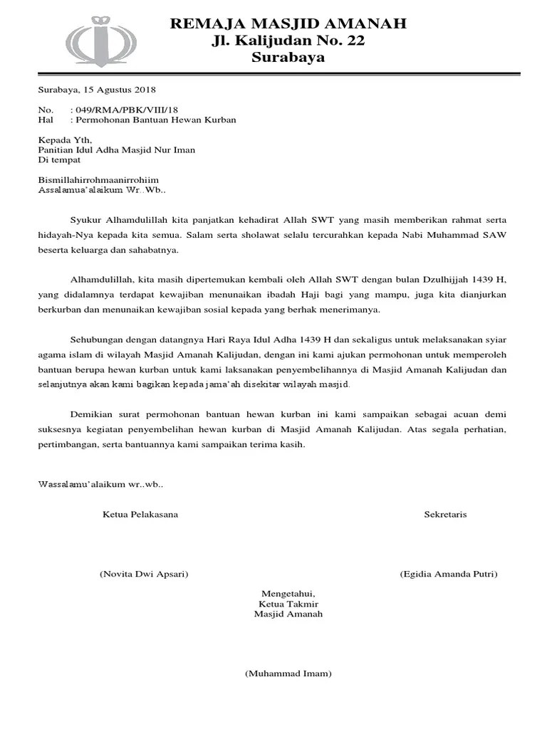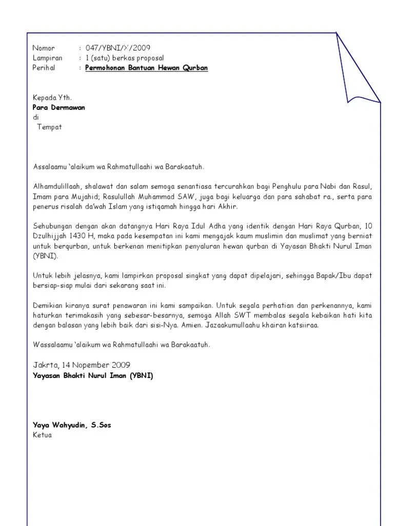 Untuk itu kami sebagai staff pengurus dkm nurul jannah bermaksud menyampaikan permohonan proposal bantuan hewan qurban untuk idul adha 1433 hijriyah ini kepada bapak kabag kesra kabupaten tasikmalaya. Panitia qurban smk muhamadiyah 1 temon, kulon progo di yogyakarta assalamu'alaikum wr.wb. Puji syukur kita panjatkan kehadirat allah swt. Surat permohonan sendiri dapat bersifat resmi atau pun tidak resmi. contoh surat keterangan kehilangan ktp by romi 7070.